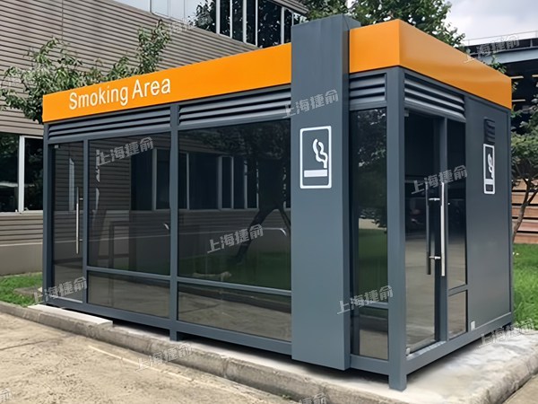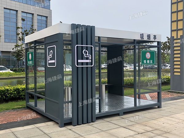 室外吸烟屋,为全封闭或半封闭式结构,可增加售卖机,便民设施。吸烟区亭为吸烟人群提供了吸烟的专有区域,...
